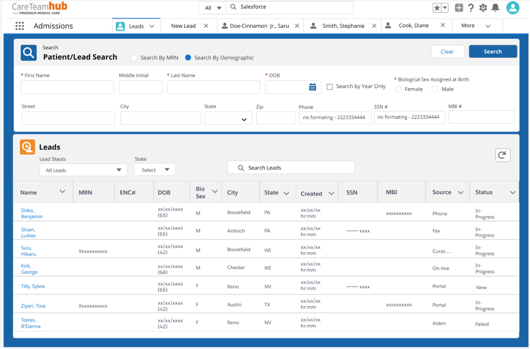 This application was designed to reduce the onboarding time it took a referral to be become to a patient. A fully trained patient intake coordinator was expected to process 15 referrals per day. We created an application that auto assigned referrals to the PIC's using the SalesForce omni channel feature. We reduced the manual assigning process, reduced the number of applications that were used from 5 to 2, and gave supervisors metrics and the ability to easily reassign referrals to other intake coordinators based on workload and PTO.