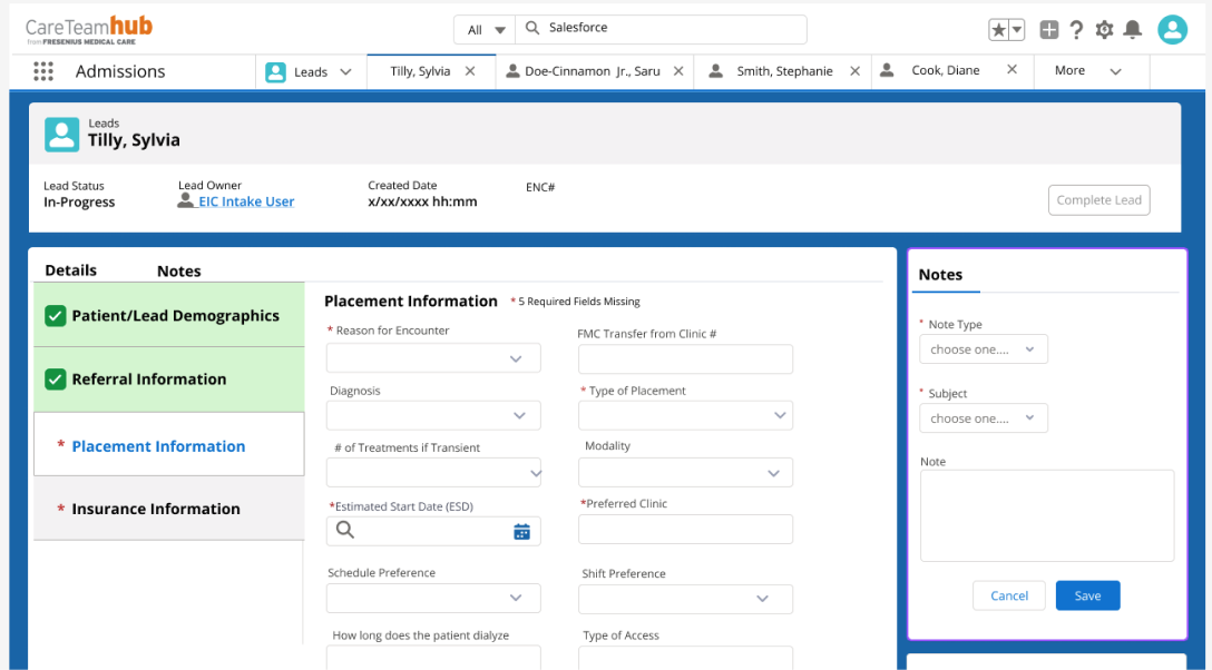 This application was designed to reduce the onboarding time it took a referral to be become to a patient. A fully trained patient intake coordinator was expected to process 15 referrals per day. We created an application that auto assigned referrals to the PIC's using the SalesForce omni channel feature. We reduced the manual assigning process, reduced the number of applications that were used from 5 to 2, and gave supervisors metrics and the ability to easily reassign referrals to other intake coordinators based on workload and PTO.