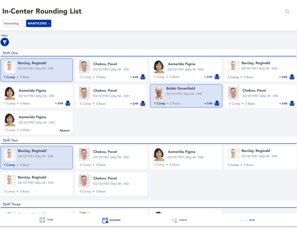 When managing patient care in a clinic, a provider needs to efficiently view and prioritize which patients to see, understand how much time each patient has remaining in the chair, and document visits accurately so they can provide timely care and maintain comprehensive records. The Rounding  time management for nephrologists, a new system has been implemented to optimize patient prioritization. By clearly defining patient shifts, the updated list shows both current and prior shift patients, alongside their remaining treatment time. This approach enables providers to identify those needing immediate attention and facilitates real-time discussions about care while patients receive treatment. The solution ensures better visibility of patient statuses, allowing for more efficient rounding and improving overall clinic workflow.
